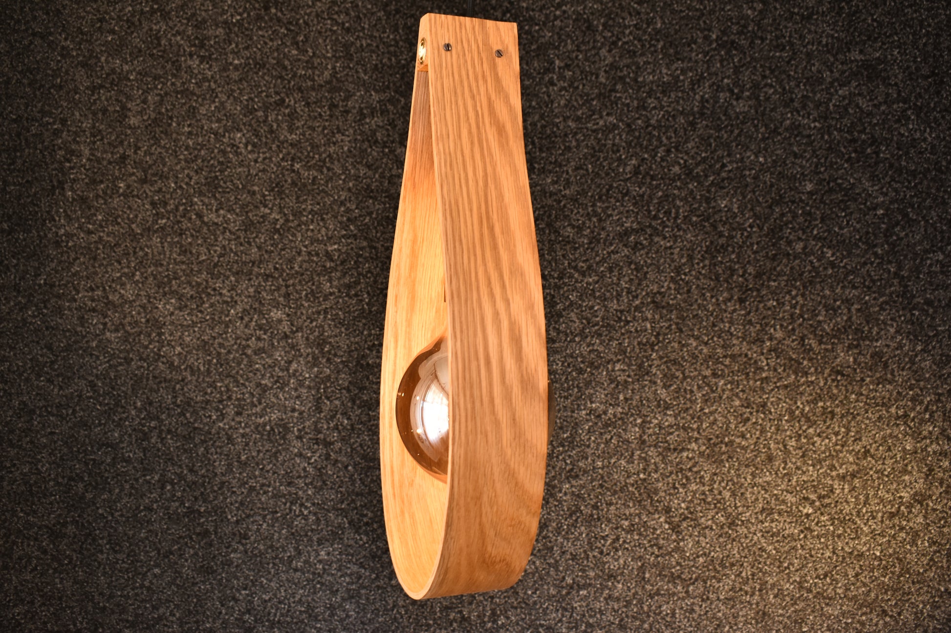 Denna eleganta skapelse är tillverkad med omsorg och kärlek, varje detalj formad för hand. Droppen kombinerar naturlig skönhet med tidlös design. Dess mjuka kurvor och massiva eken ger ett varmt och inbjudande ljus till ditt hem.